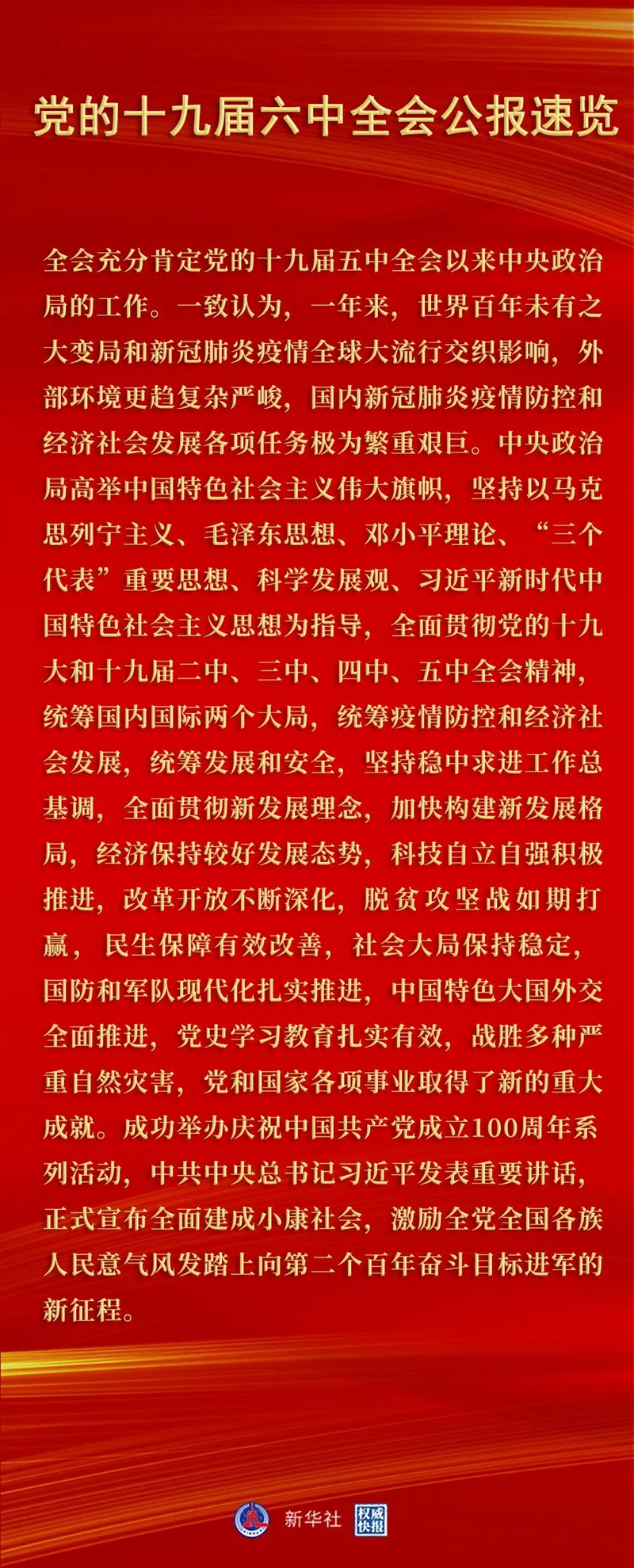 黨的十九屆六中全會(huì)公報(bào)速覽