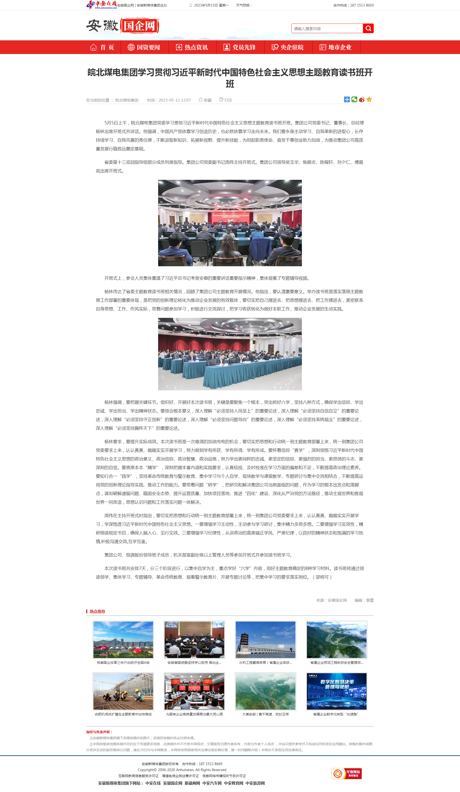 5月12日安徽國企網(wǎng):皖北煤電集團學習貫徹習近平新時代中國特色社會主義思想主題教育讀書班開班