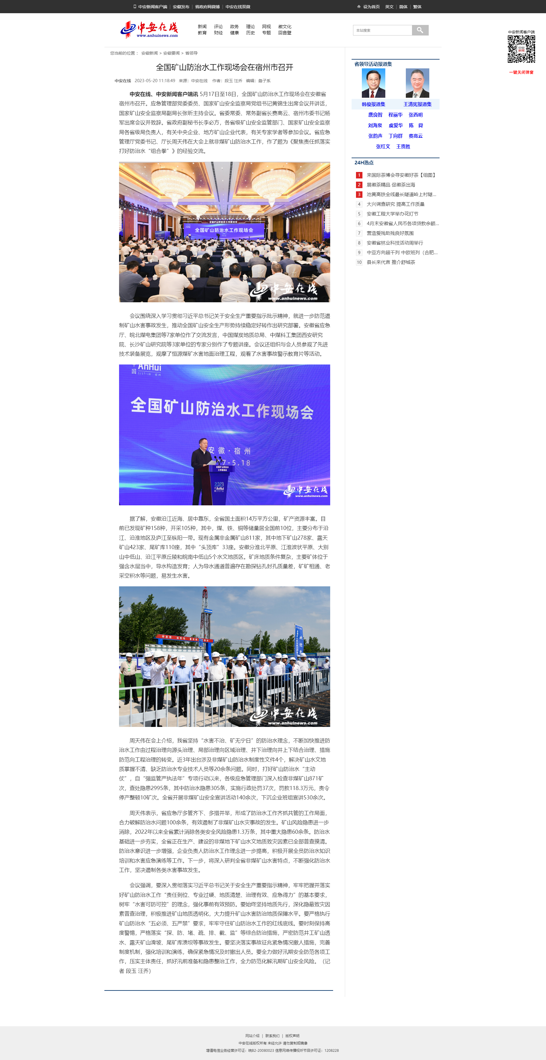 5月20日中安在線(xiàn):全國(guó)礦山防治水工作現(xiàn)場(chǎng)會(huì)在宿州市召開(kāi)