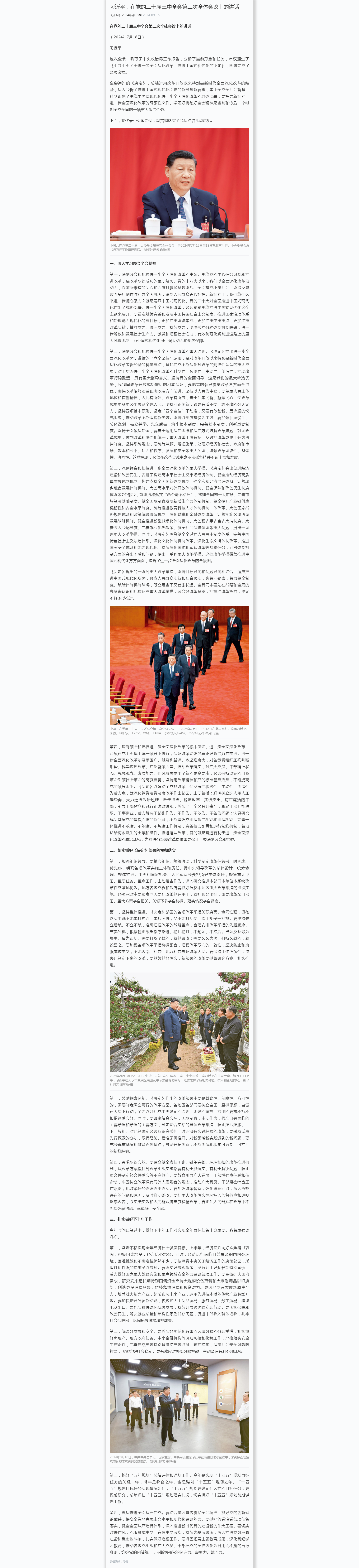 習近平:在黨的二十屆三中全會第二次全體會議上的講話